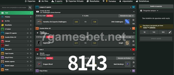 A aposta 8143 oferece aos jogadores a experiência mais conveniente de apostas em eSports!